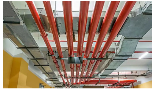 消防喷淋系统增加100mm宽的黄色色环,方便与消火栓系统区分。